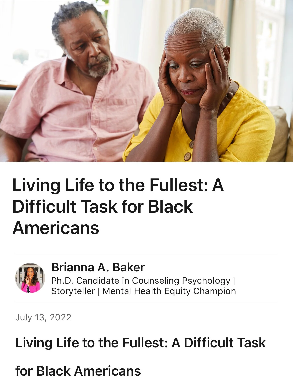 “Known for her courage and outspokenness for Black mental health, Brianna's commitment to mental health equity has been featured on Spectrum News, Refinery 29, WebMD, and other prominent media outlets.”